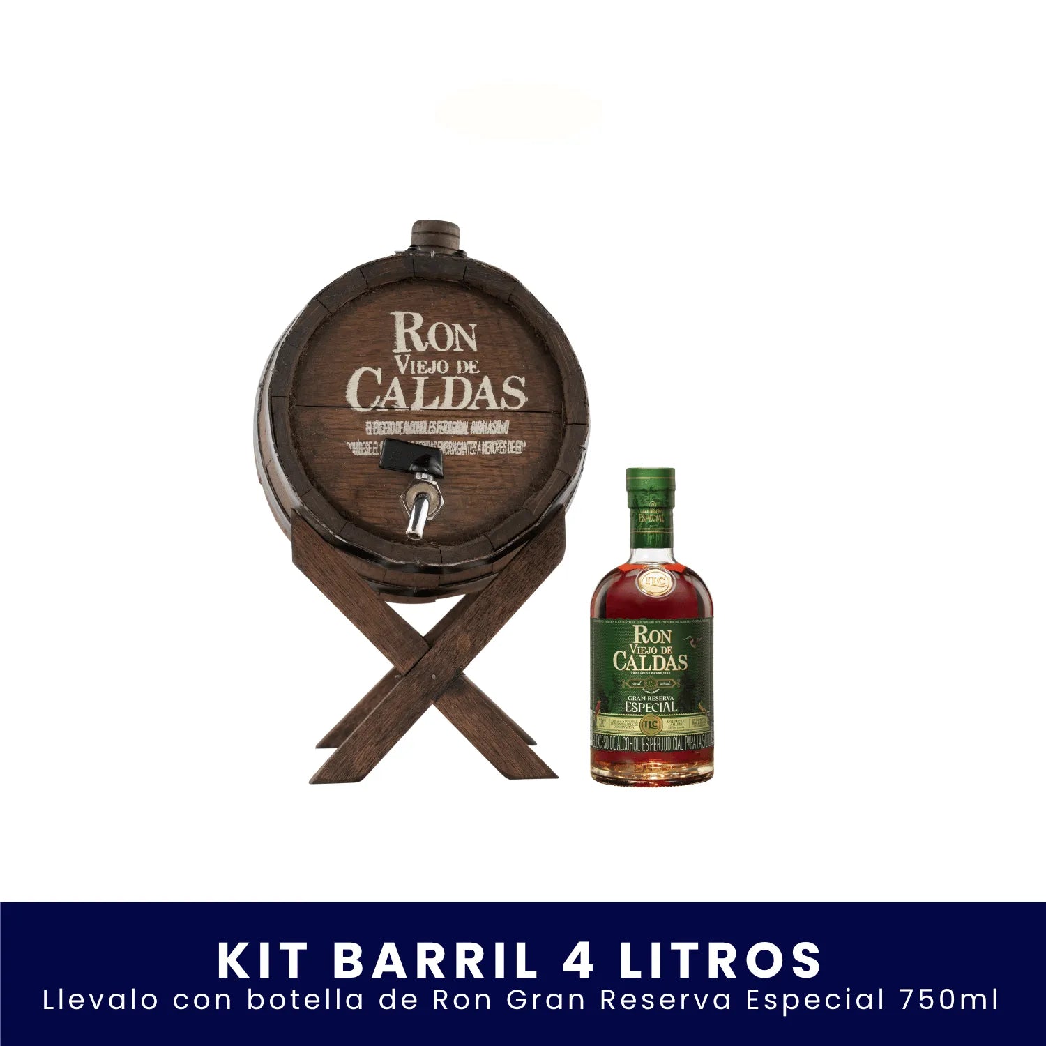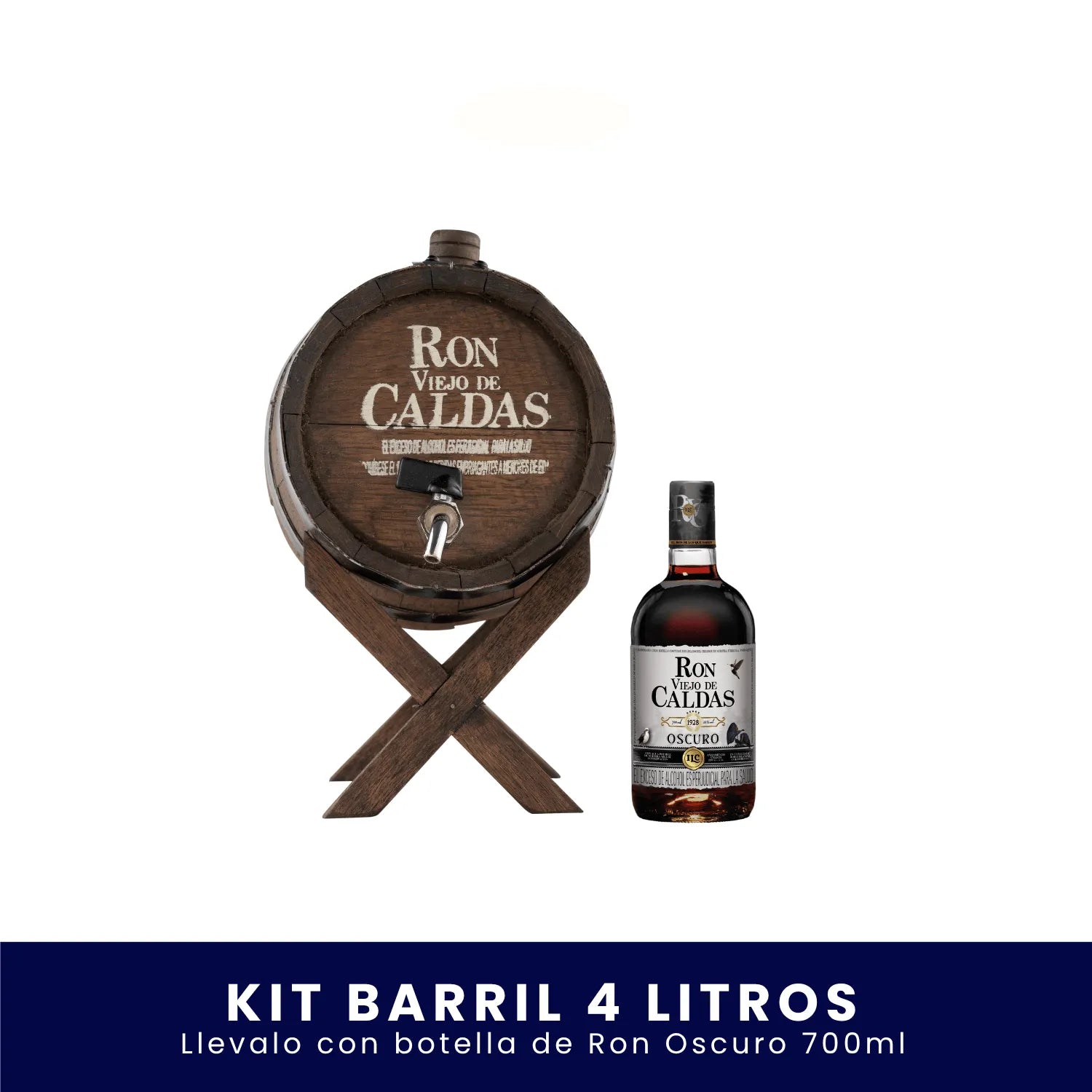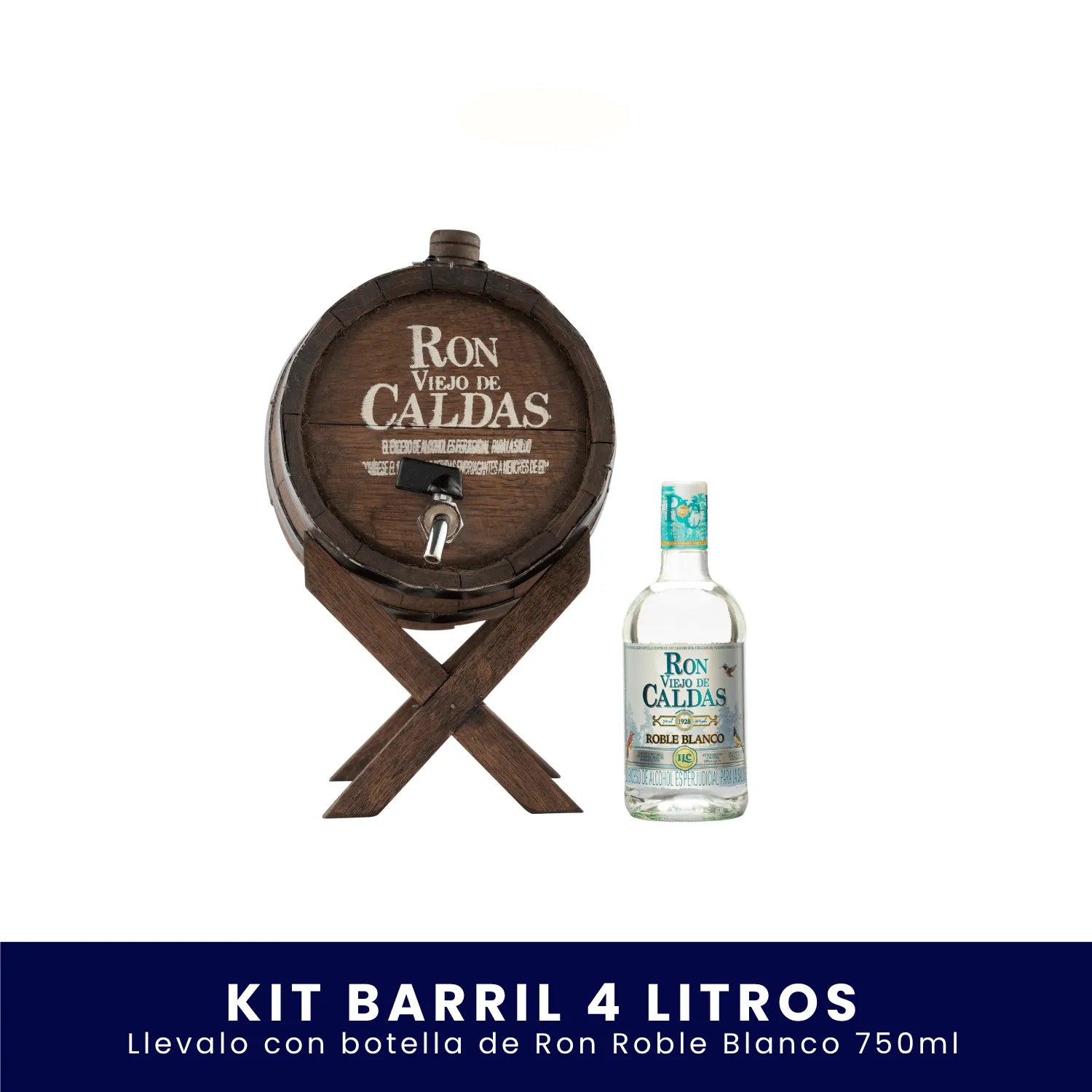 El lujo de añejar el mejor sabor. Con Fiesta Ronera eliges una botellas de Ron Viejo de Caldas (750 ml) a tu gusto y elevas cada brindis con un barril en madera que luce espectacular en cualquier espacio.