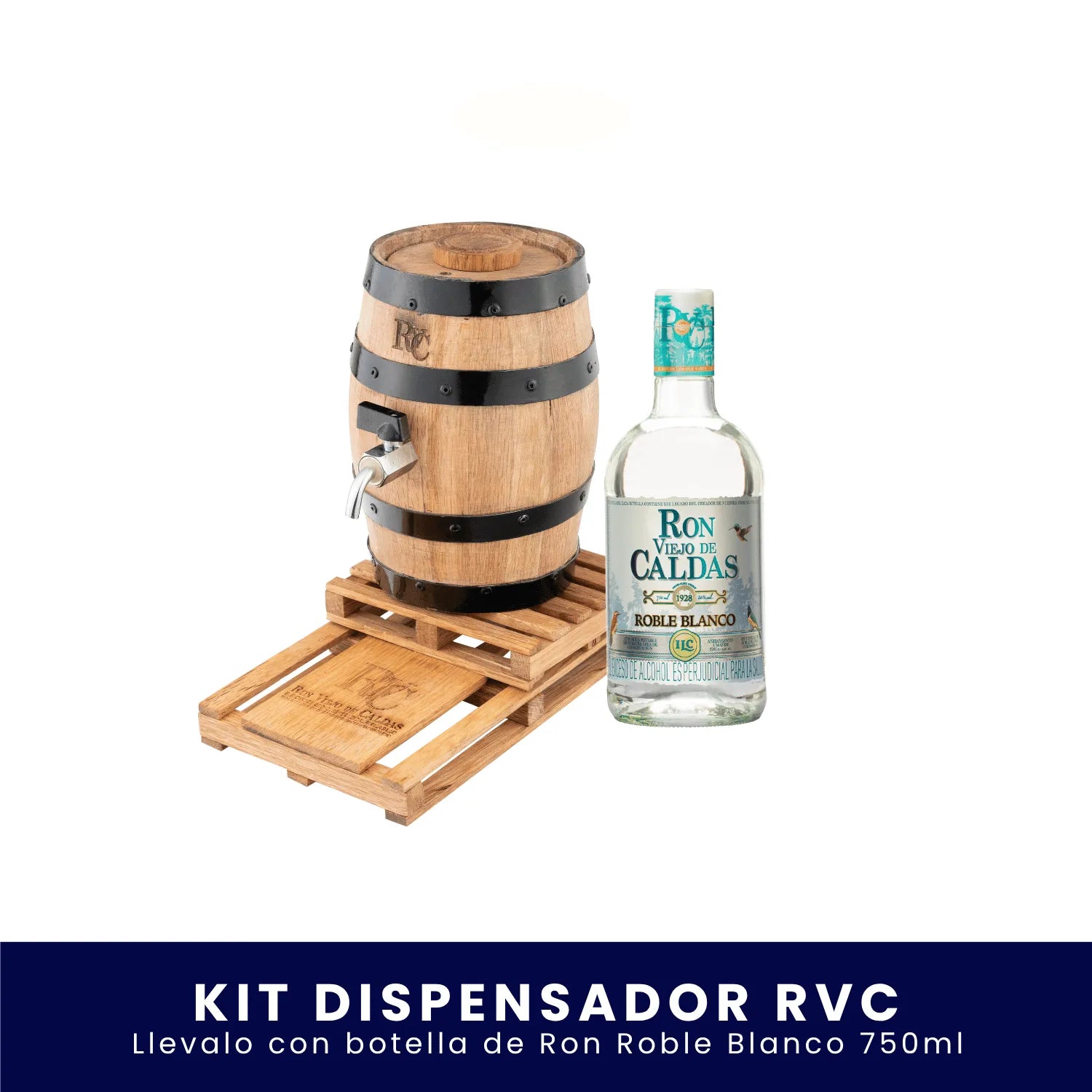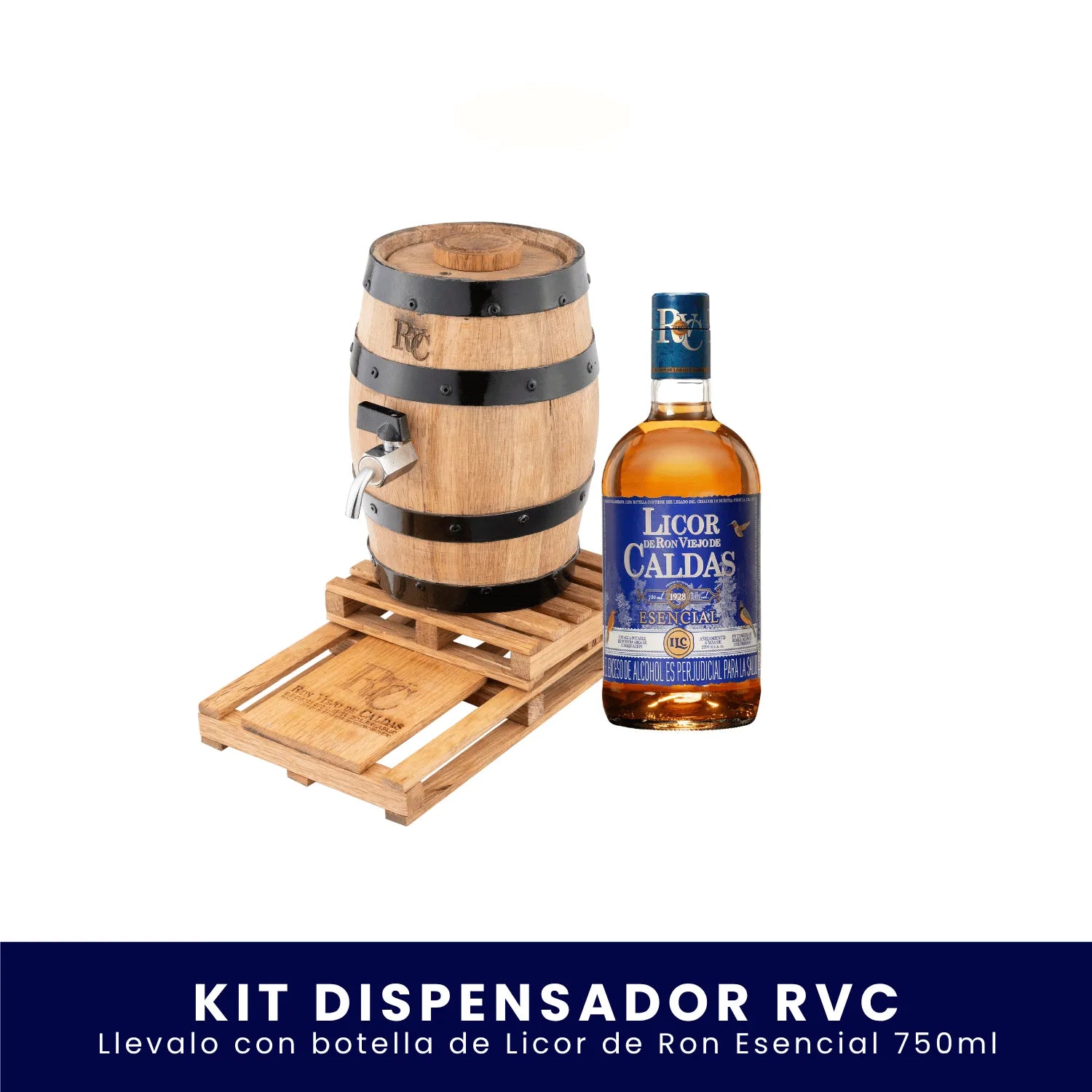 Sirve con estilo, brinda sin esfuerzo. Con el Kit Dispensador de Botella eliges la botella de Ron Viejo de Caldas (750 ml) que prefieras y la presentas en un dispensador tipo barril en madera que roba miradas en cualquier reunión.