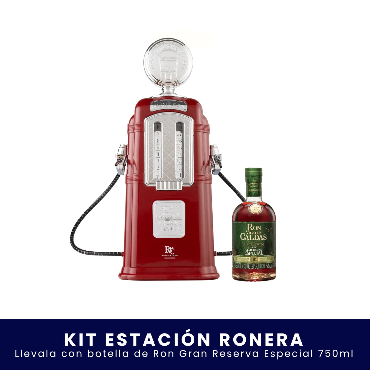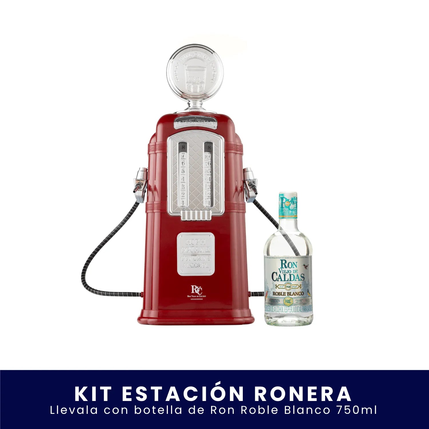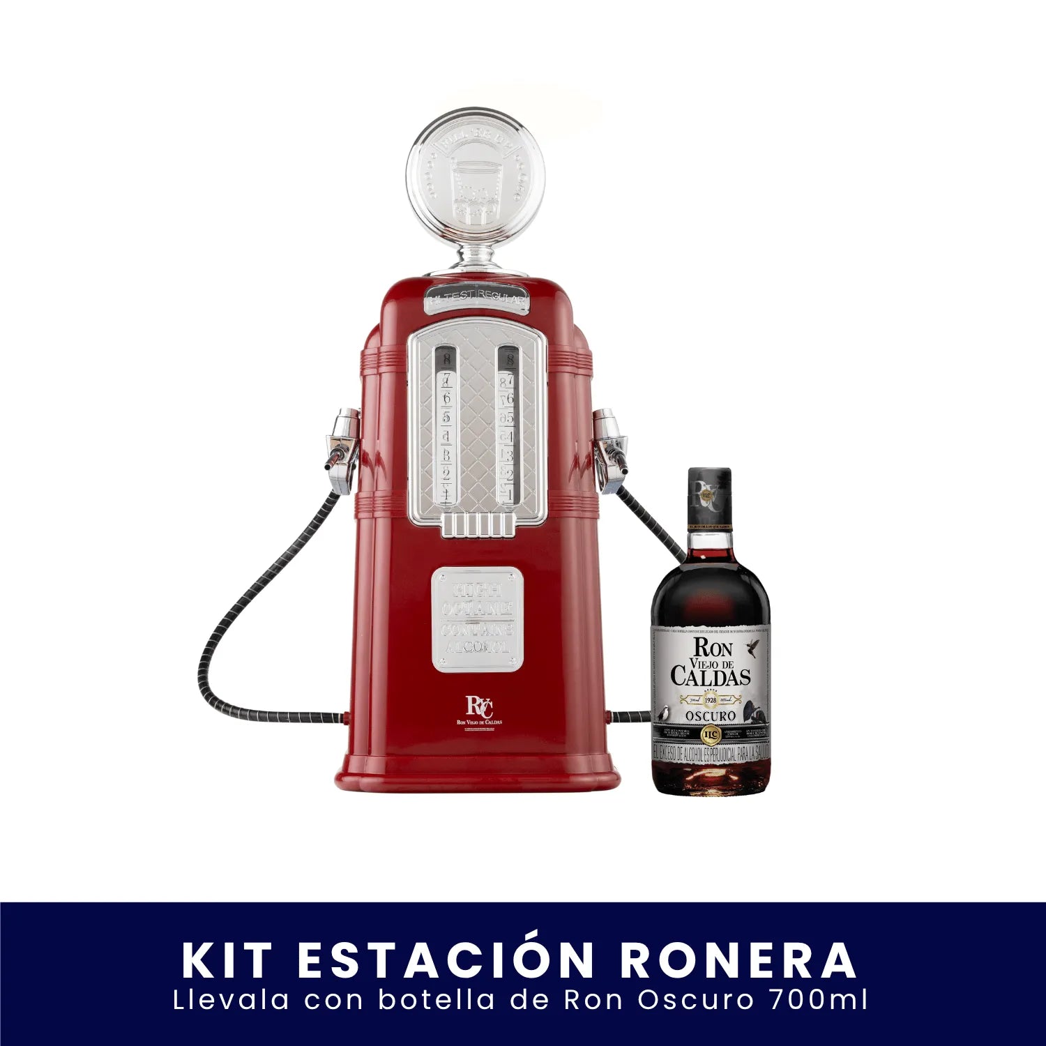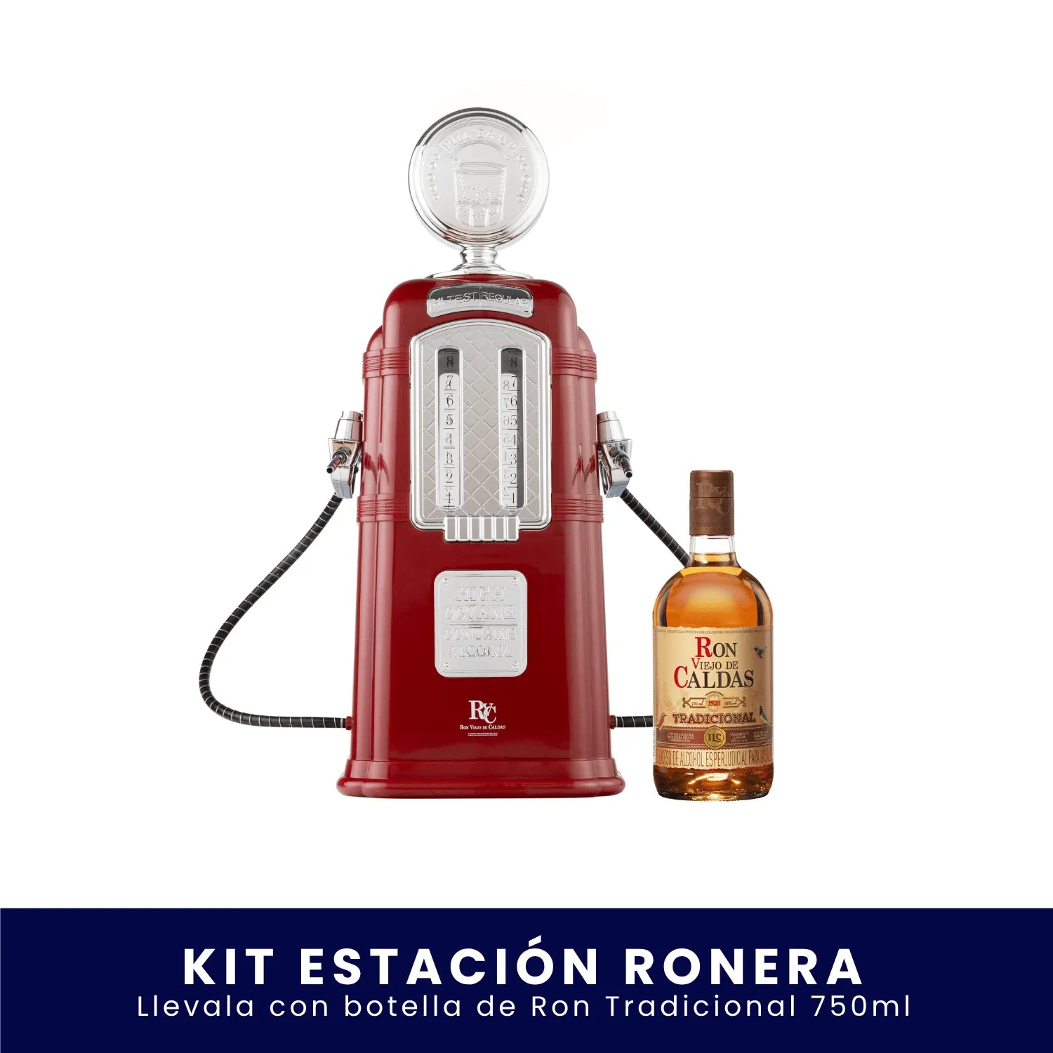 La parada obligatoria para recargar momentos inolvidables. Con el Kit Estación Ronera eliges la botella de Ron Viejo de Caldas (750 ml) que más te guste y conviertes cada encuentro en una experiencia con aire vintage, sabor premium y mucho estilo.