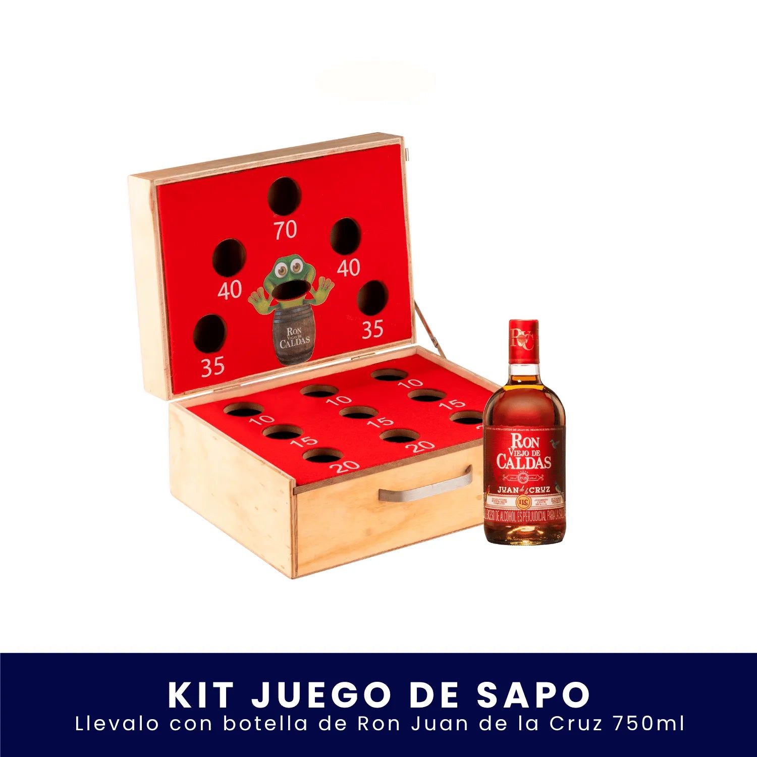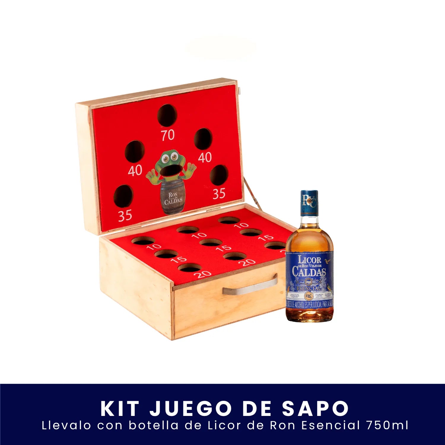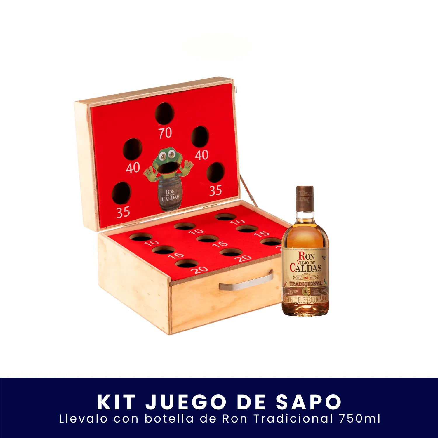 El Kit Juego de Sapo Ron Viejo de Caldas – Arma tu Kit reúne el clásico juego colombiano en versión portátil con la botella de Ron Viejo de Caldas 750 ml que tú eliges. Perfecto para animar reuniones, fincas y parches de amigos donde nunca faltan los retos, las risas y el brindis.