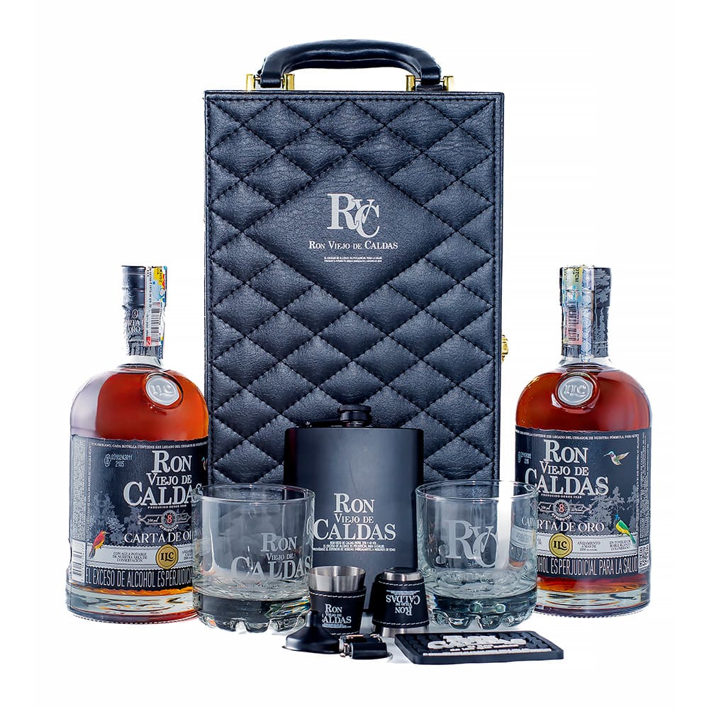 El Kit Brindo Contigo combina elegancia y funcionalidad en un estuche premium diseñado para los amantes del Ron Viejo de Caldas Carta de Oro. Todo lo necesario para brindar con estilo y celebrar las mejores ocasiones.