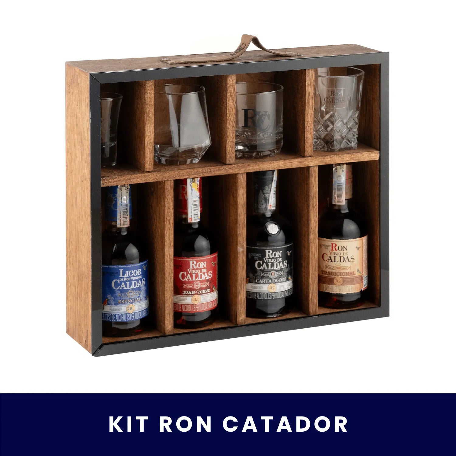 El Kit Ron Catador es una invitación a explorar los perfiles más emblemáticos de Ron Viejo de Caldas. Ideal para regalar o para vivir una experiencia de degustación única.
